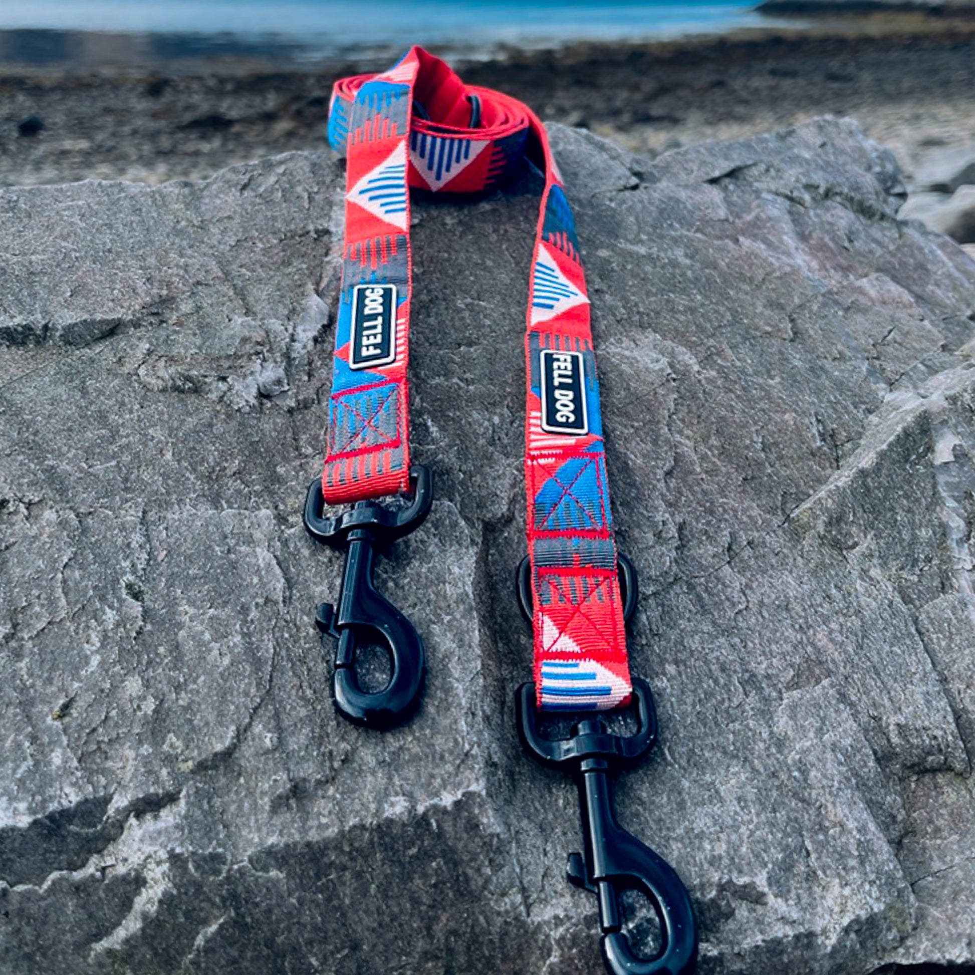 This lead can be used in a variety of ways; Wear across the body or waist for a hands-free walking. Coordinating with the Helvellyn harness it can be used as a double ended lead, attaching to the front and back of the harness for more control when your dog pulls. Use with two dogs, or use as a long line for puppies or general training. Available in 2 colourways, built to coordinate with the Helvellyn Harness: Choose Sunset to match with your Blue Moon and Red Helvellyn Harness. Choose Black & White to match to Forest & Campfire Harness.